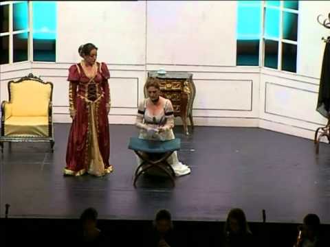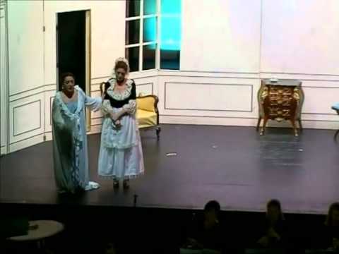La Condesa, dicta a Susana una carta para el Conde, para confundir a su marido. Mientras, entran un grupo de campesinas para ofrecerle flores a la Condesa, entre las que se encuentra Cherubino vestido de mujer. Antonio, el jardinero, y el Conde le descubren.